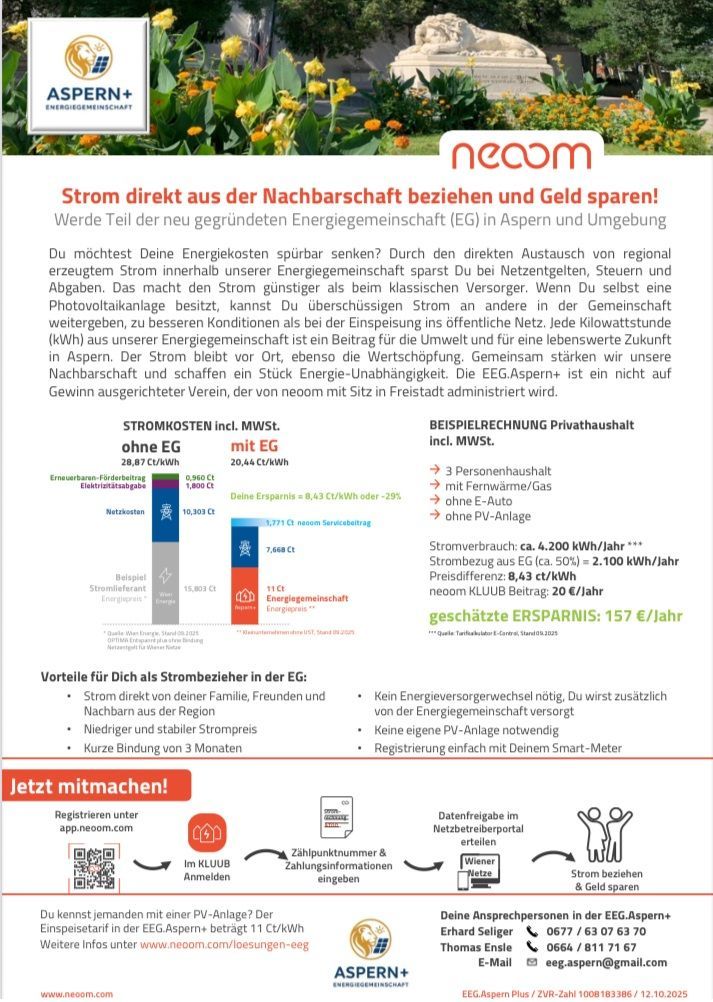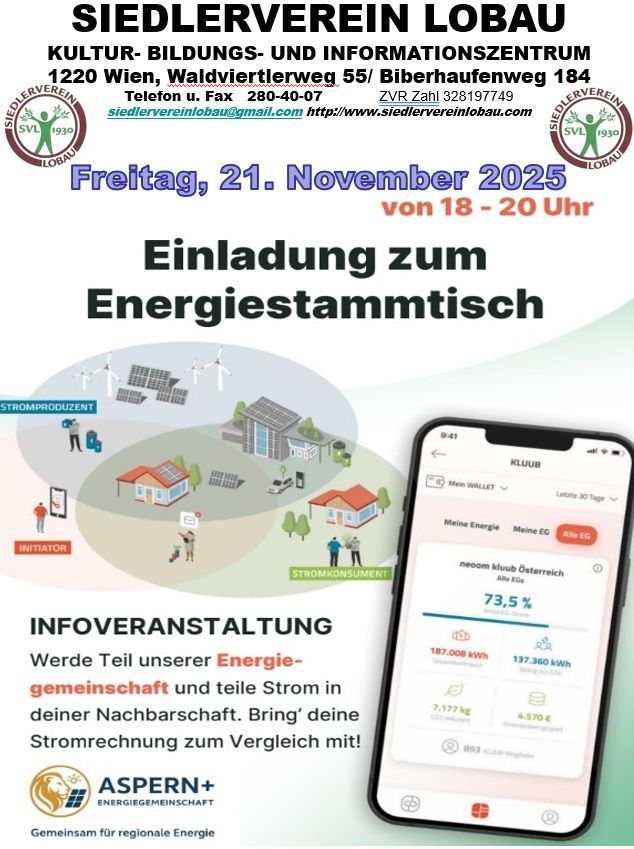 VORSCHAU: Unterstützung der Initiative zur Gründung einer neuen regionalen Energiegemeinschaft ASPERN+ durch den SIEDLERVEREIN LOBAU