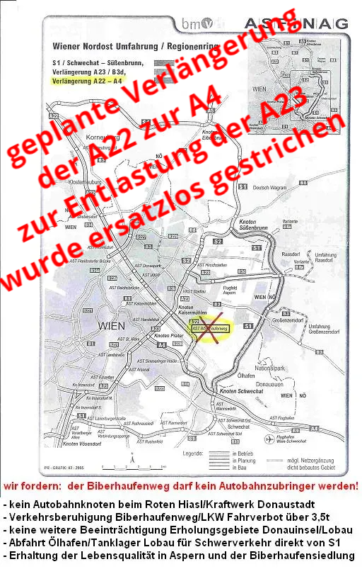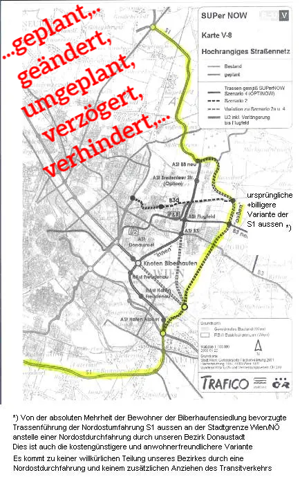 - daher erforderlich die rascheste Fertigstellung des fehlenden Teiles der NORDOSTUMFAHRUNG - Durchzugs- und Transitverkehr um Wien herumführen